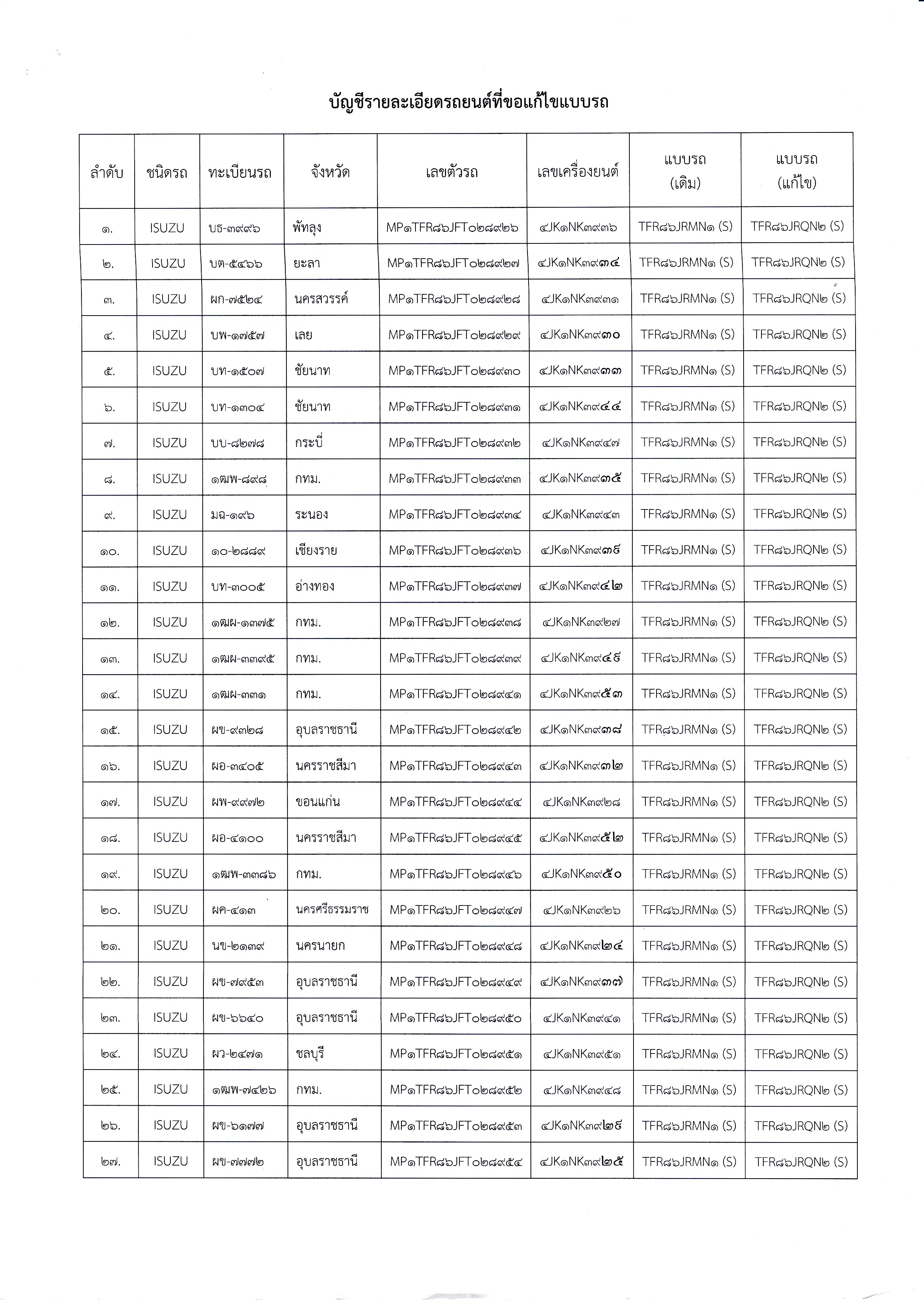 เรื่อง : แจ้งแก้ไขแบบรถยนต์ ชนิด ISUZU (2) |